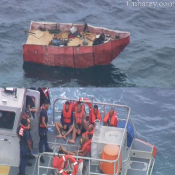 Imágenes aéreas mostraban a los balseros encima de un barco de los Guardacostas.